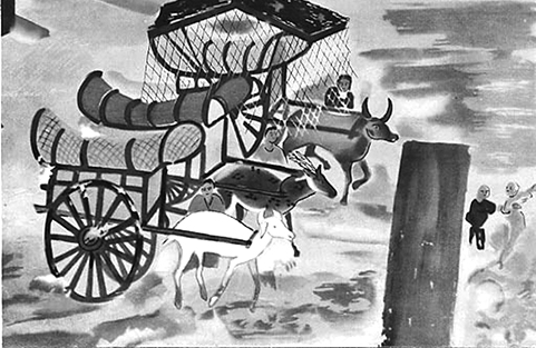 所以大長者就權巧方便,小孩子既然喜歡玩車子,就說:「我這裡有羊車、有鹿車、有牛車,你們要不要呢?」小孩子一聽,一下子統統衝出來了。衝出來以後,大長者想,給這三種車子有什麼大用呢?所以就統統給他們最有實用的大白牛車。