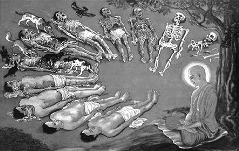 其次,智者大師專就觀現前這一念心,提出了「四運觀心」。《摩訶止觀》說:「未生無潛處」,觀察現前這一念心,還沒起來時,它藏在什麼地方?沒有藏的地方啊!「欲生無來處」,念頭準備生起來了,它又從哪裡來?找不到來的地方。「正生無住處」,正在起念頭時,它又停止在什麼地方?根本無住處。「已生無去處」,念頭已經消失了,它又會跑去哪裡?無去處,也找不到去的地方。找來找去,其實是覓心了不可得,了不可得就是不思議境,就是不思議觀,也就是即空、即假、即中。