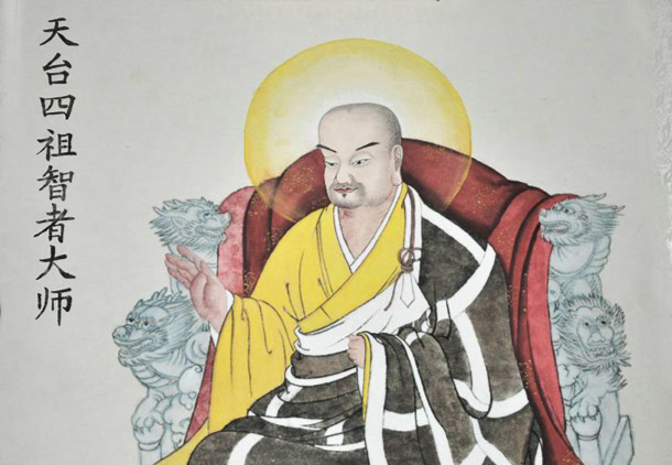 慧思禪師之後傳給智者大師。智者大師法名智顗,「智者」之名乃源於隋煬帝楊廣對大師的尊稱。隋朝初年,當時受封晉王的楊廣,學佛相當精進,他禮請智顗大師來說法,同時求受菩薩戒。晉王尊崇大師是一個具有大智慧的人,所以尊稱他為智者,而後人也就沿用這個尊稱。智者大師十八歲出家,二十三歲時,到河南的大蘇山親近慧思禪師。禪師一見到智者大師就說:「善哉!佛子,過去我跟你都在印度靈鷲山上,同聽釋迦牟尼佛講說《法華經》。因那個時候結了師兄弟的緣分,所以現在你來跟我學了。」禪師就傳授智者大師「法華三昧」。「法華三昧」怎麼修呢?一期共三七二十一天,須拜《法華懺》,讀誦《法華經》。所謂讀誦並非一般的隨口滑過,而是須隨文入觀,隨著《法華》的經文,入空、假、中三觀,即在讀誦當中修一心三觀。