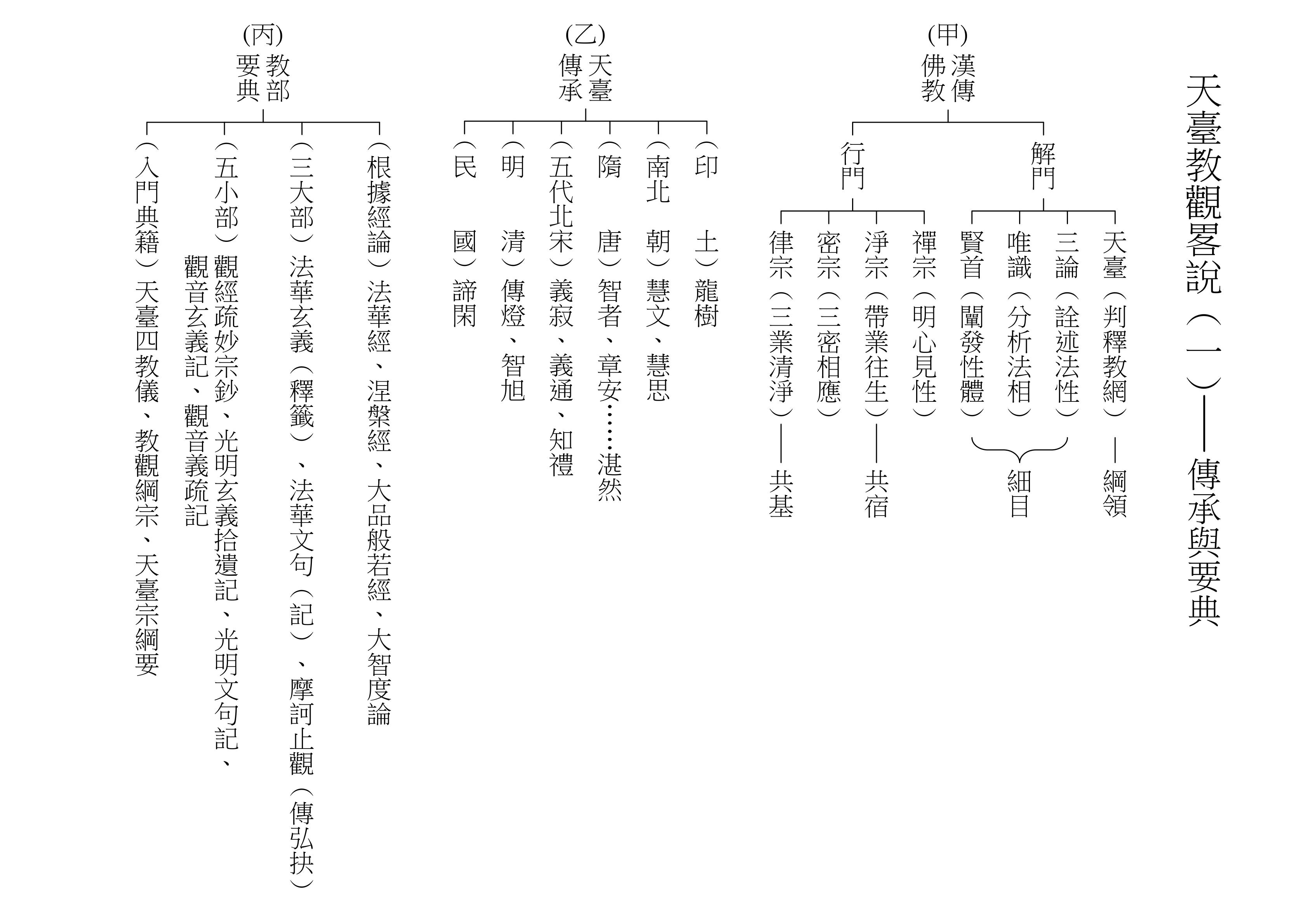既然要研究天臺學,得先介紹天臺這一家學說的傳承,請看(乙)表。