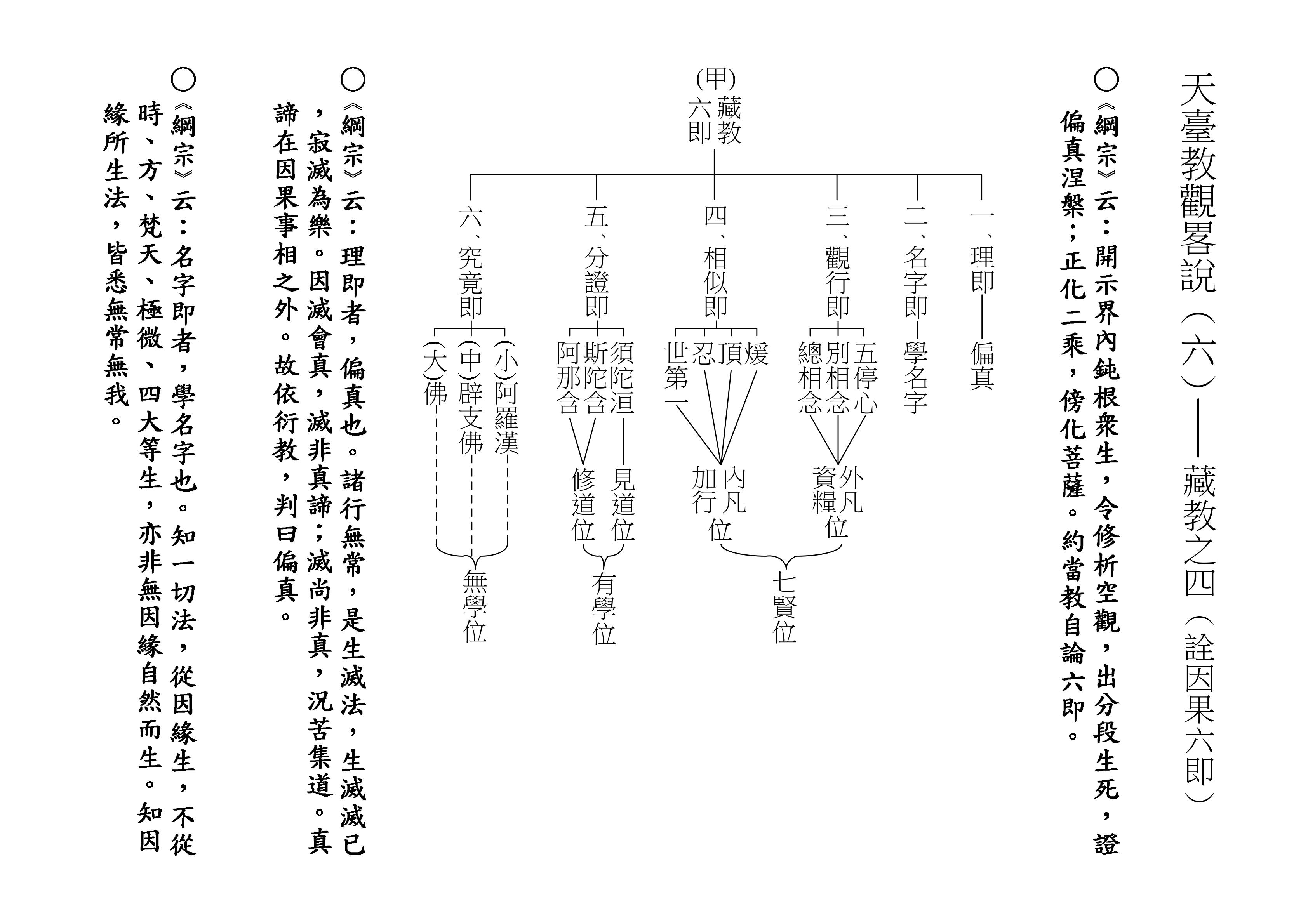 關於「六即位」,在第三十七表有〈六即佛頌〉,這是宋朝天臺家的大師──普潤大師,外號無機子──所寫的偈頌。這個偈頌在寒假講座已略講過,在此省略,印光大師《上海護國息災法會法語》,有專章解釋,可以自行參考。