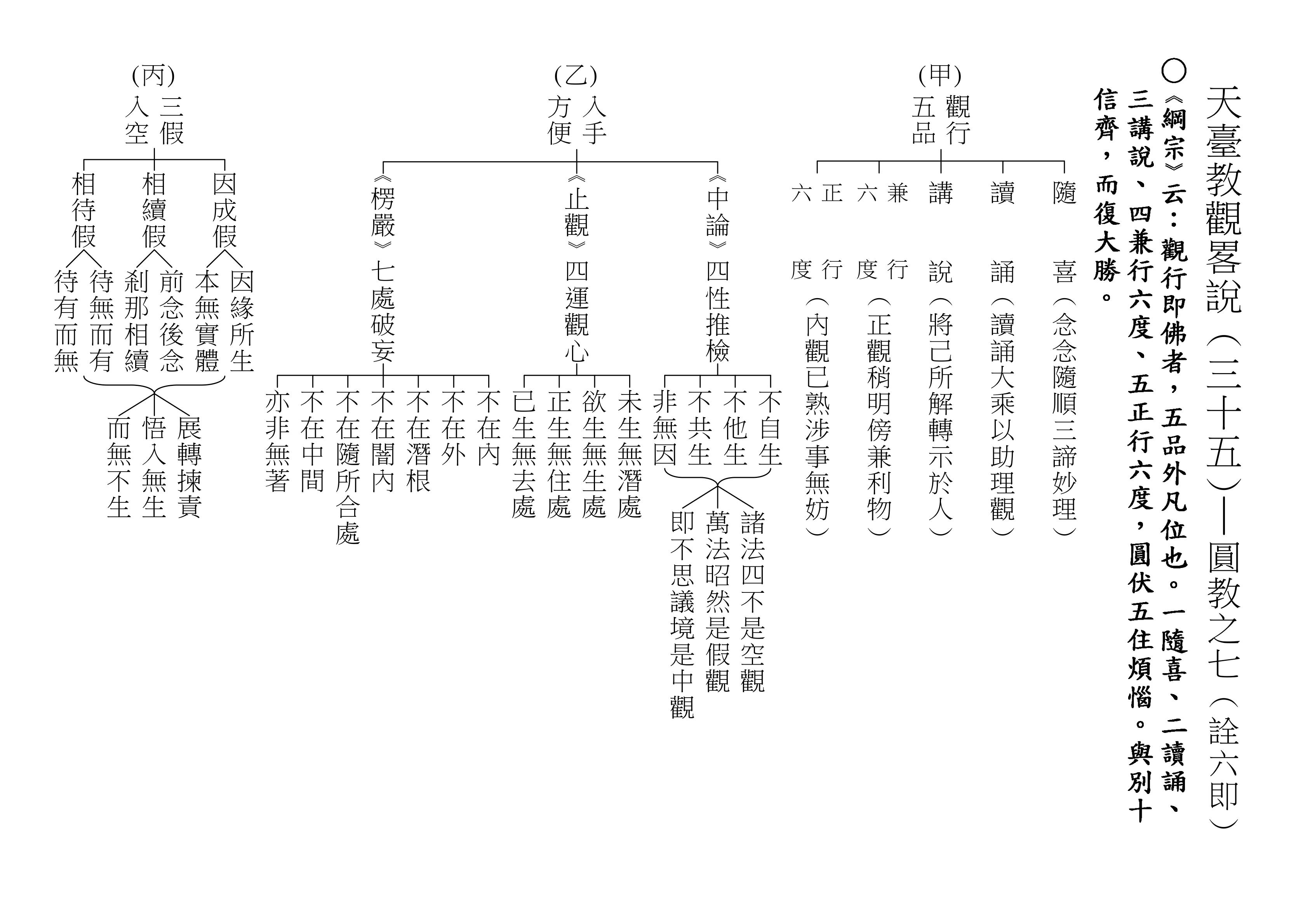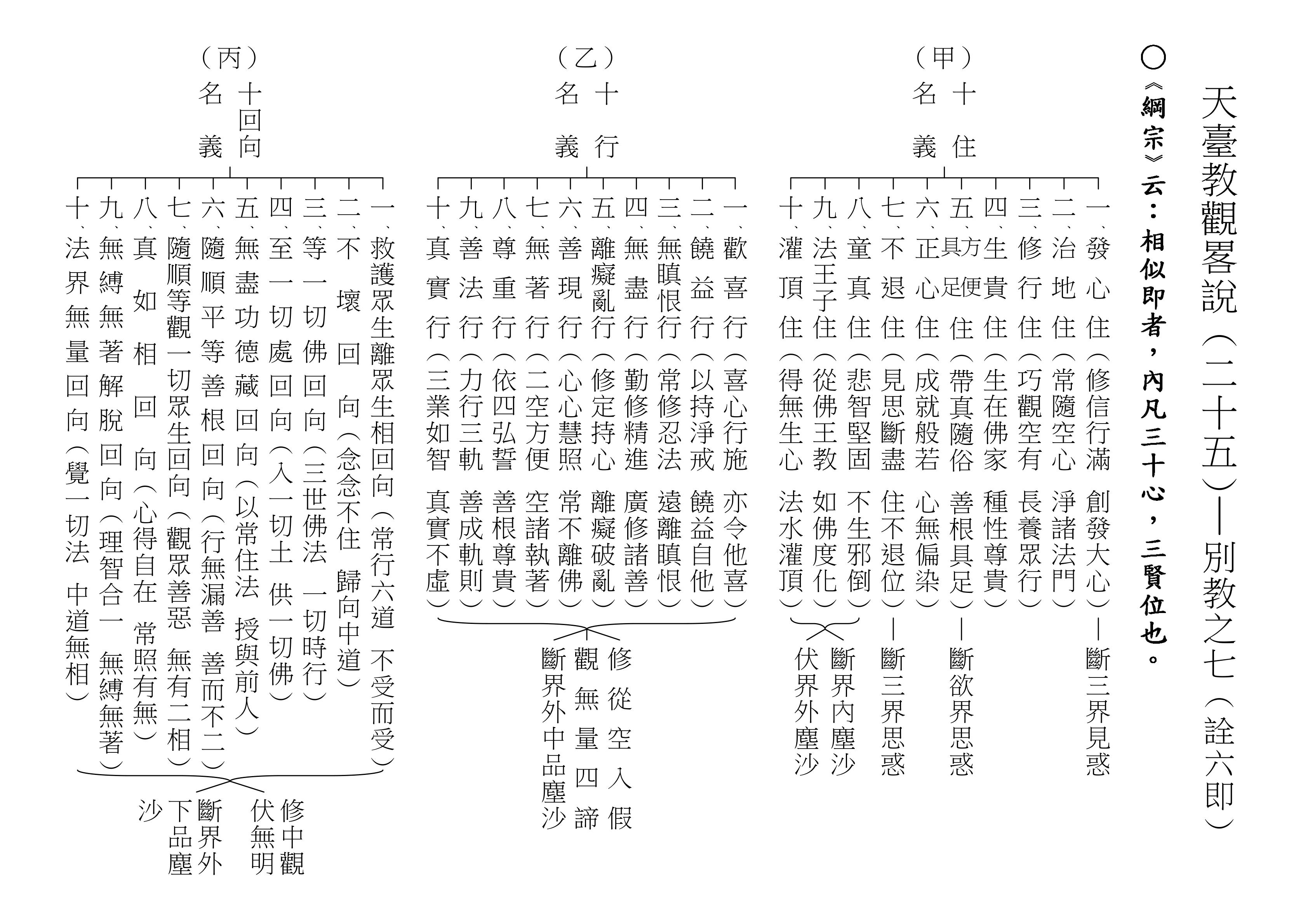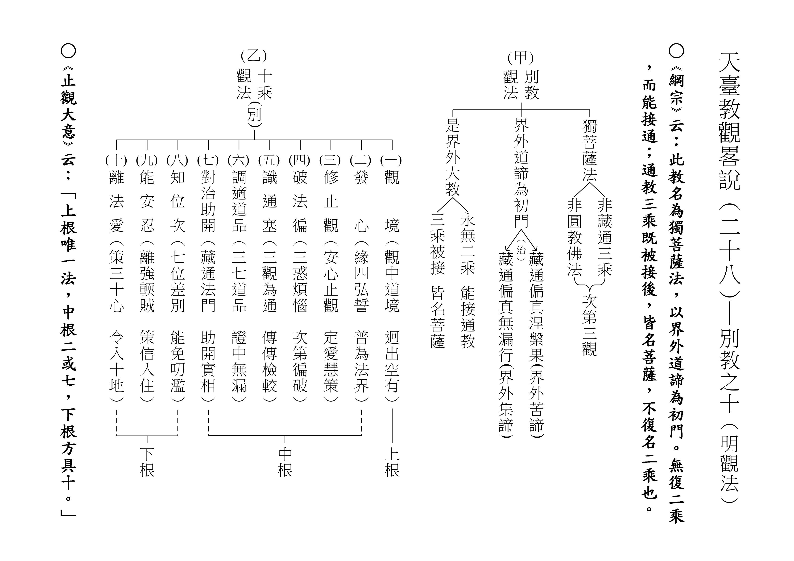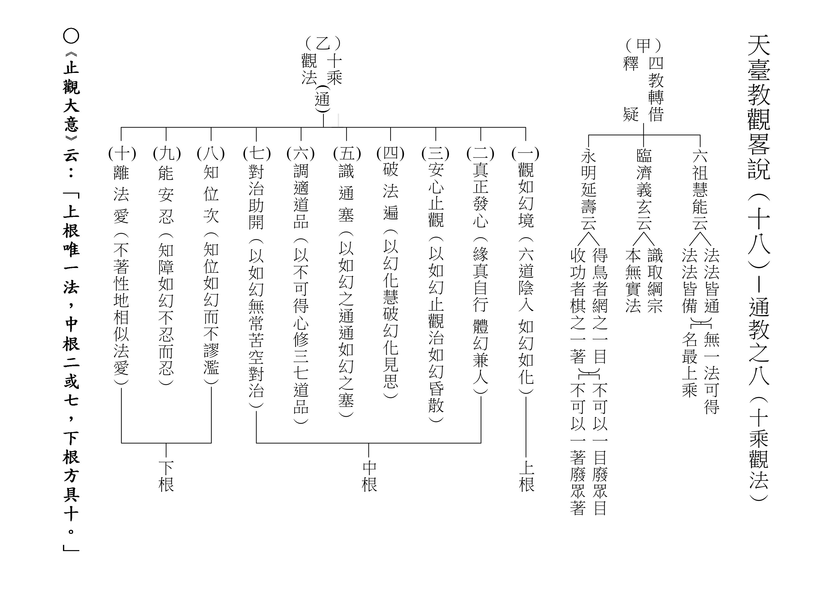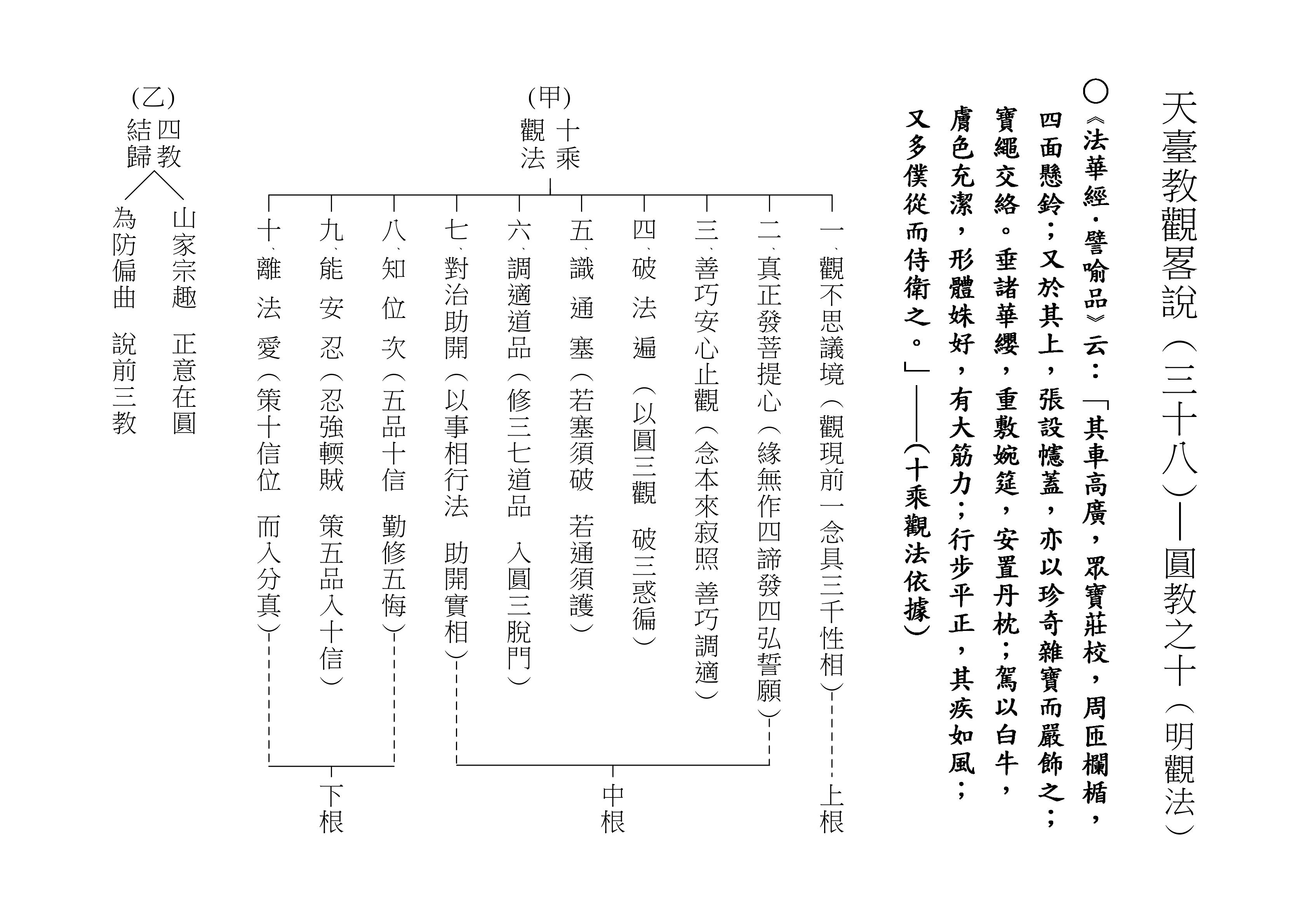 十乘觀法就是根據這一段經文來的,下面(甲)表,我們就對照著經文來解釋十乘觀法。