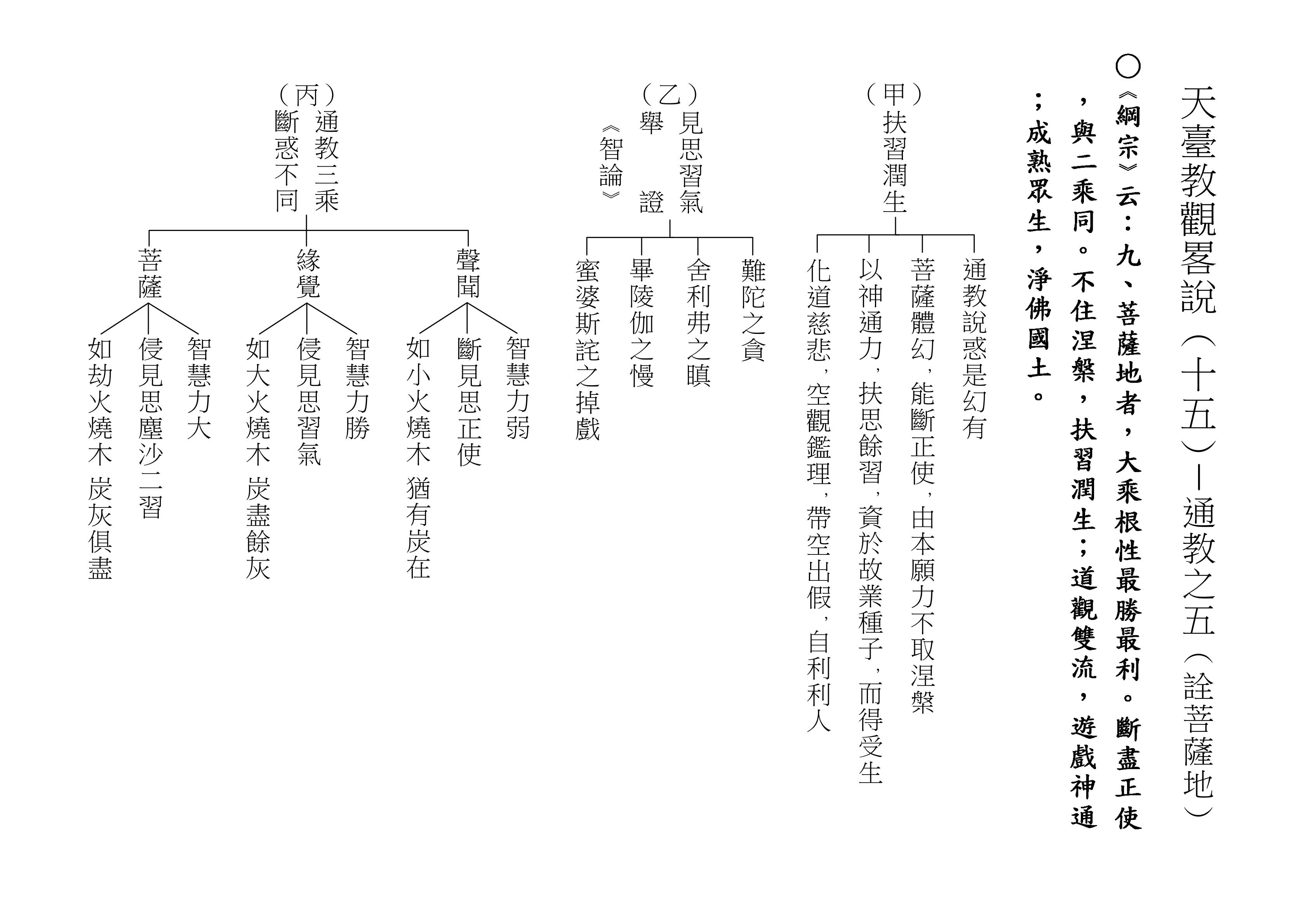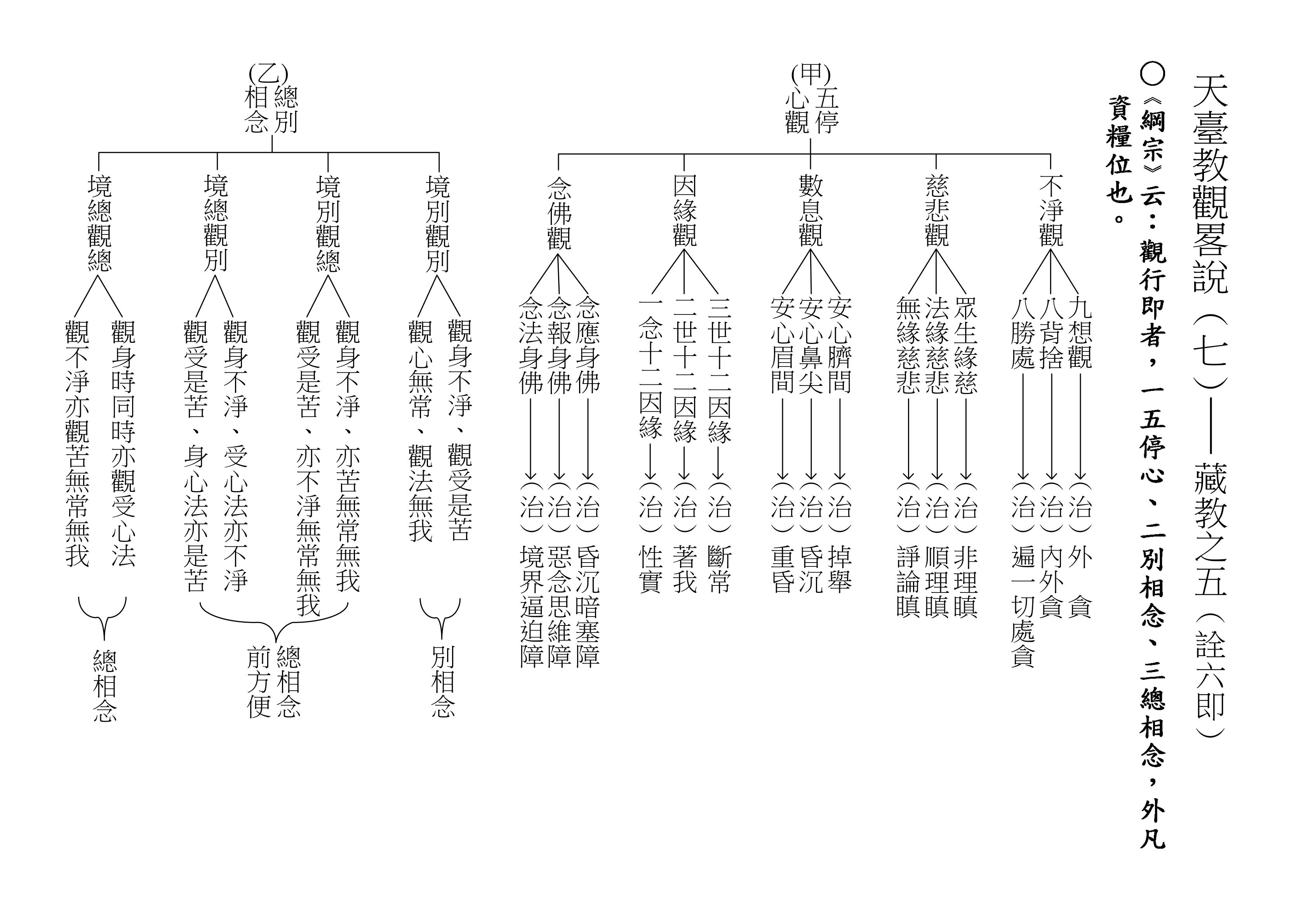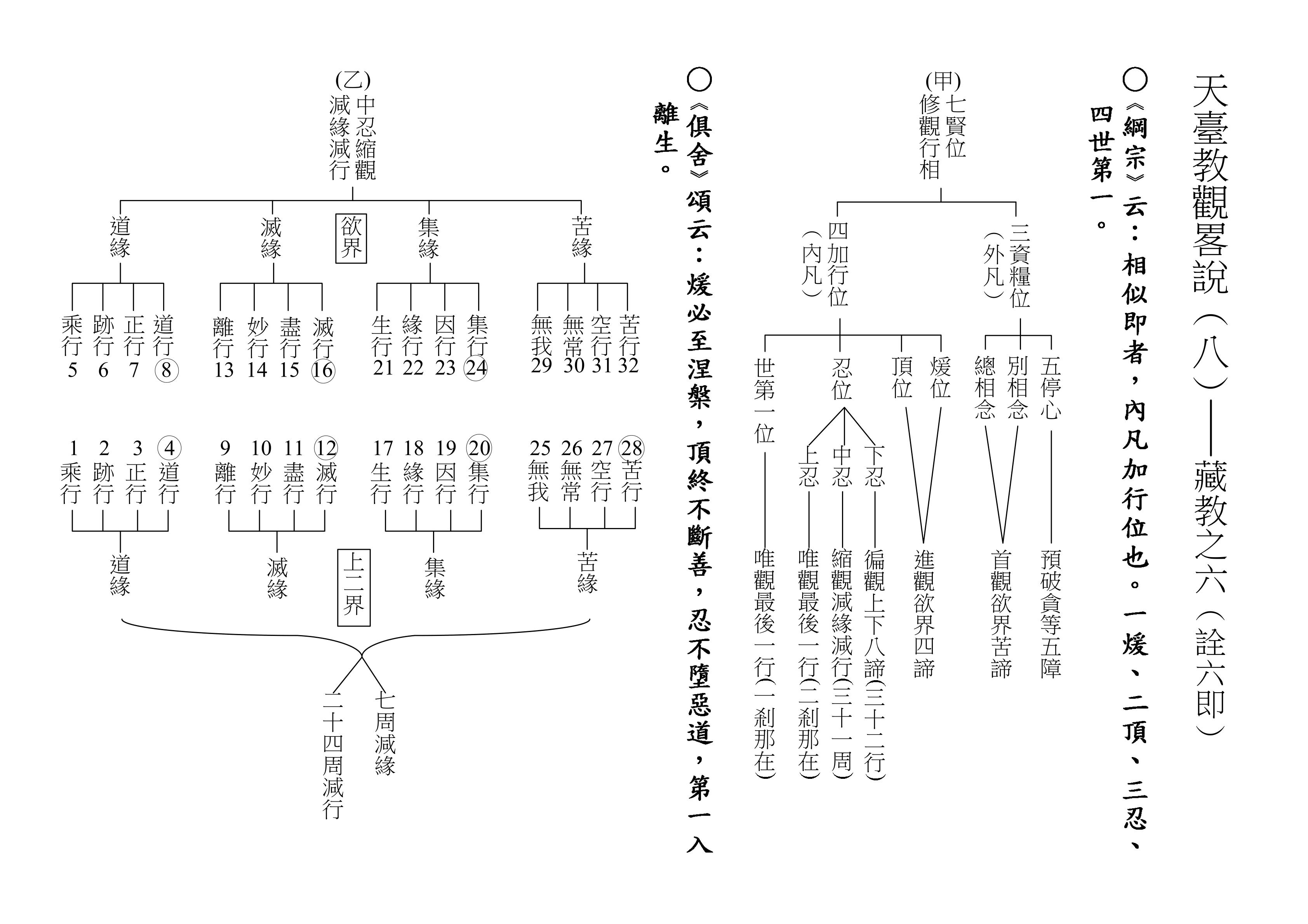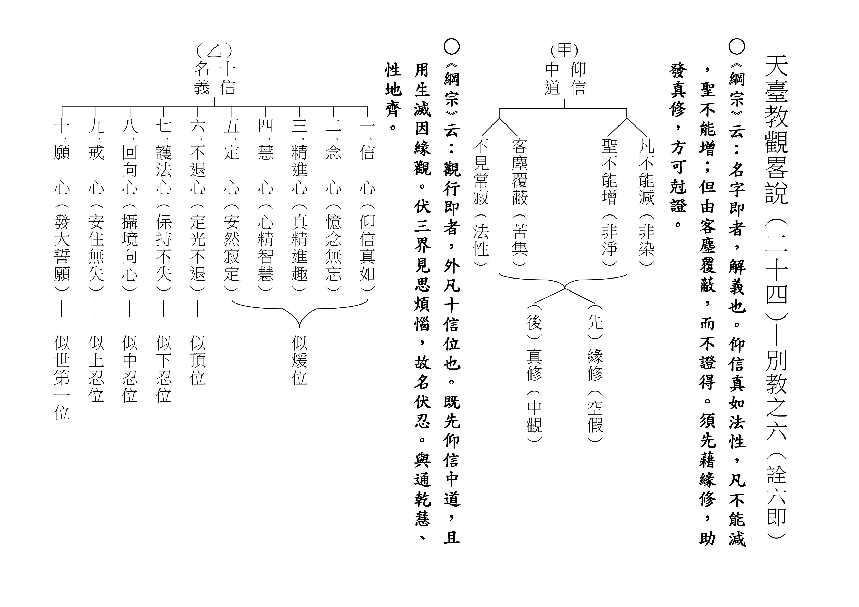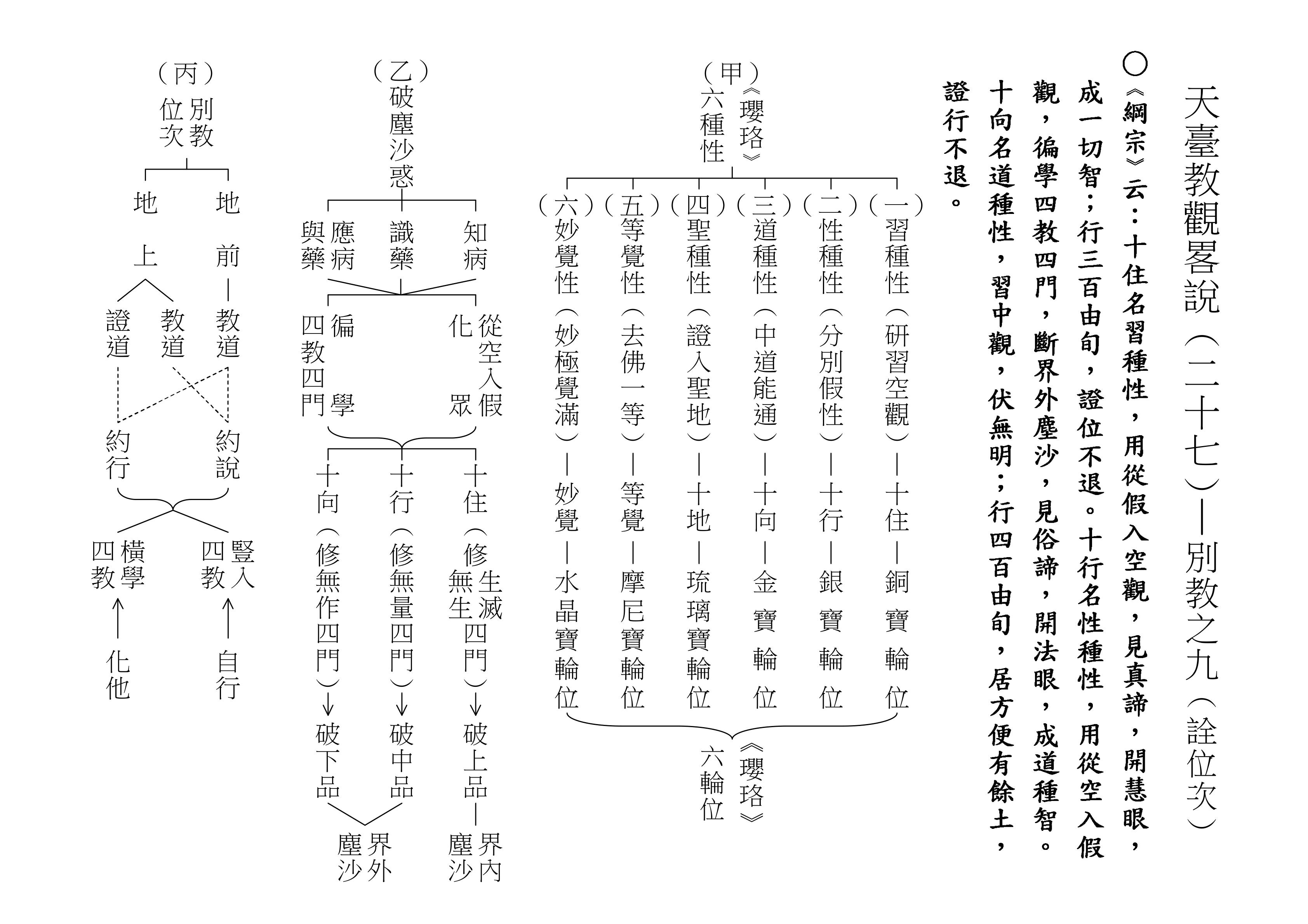 十乘觀法就是根據這一段經文來的,下面(甲)表,我們就對照著經文來解釋十乘觀法。